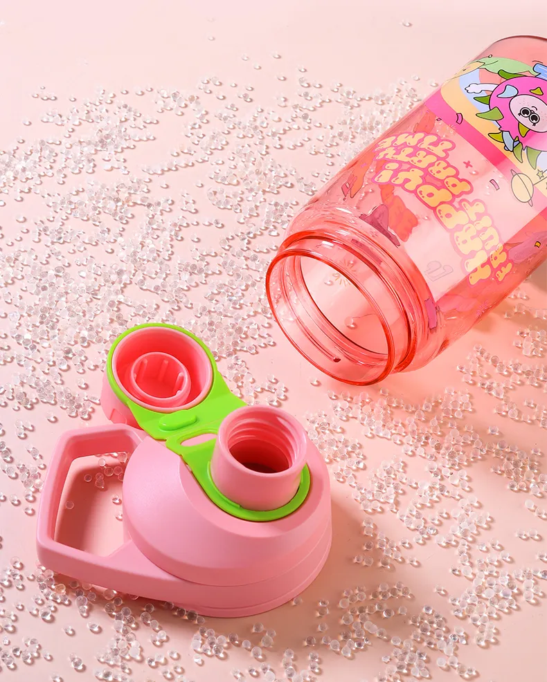 Flip-up straw with protective cover and anti-choke bite valve ensures water comes out gently.